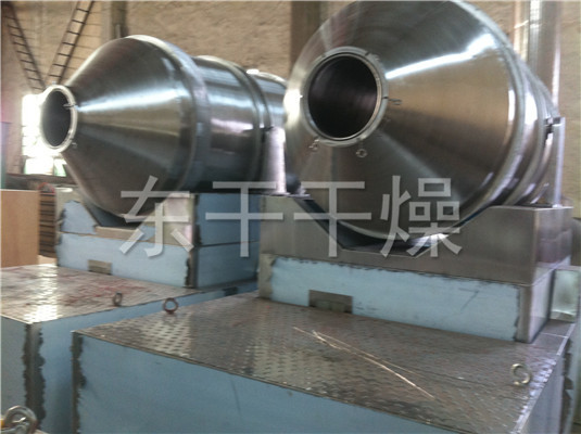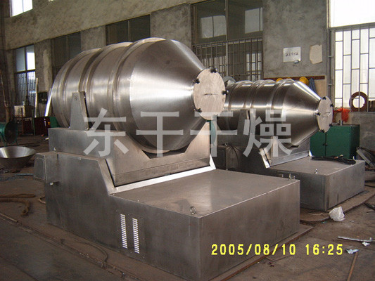 EYH二维混料机的转筒可同时进行二个运动,一个为转筒的转动,另一个为转筒随摆动架的摆动。被混合物料在转筒内随转筒转动、翻转、混合的同时,又随转筒的摆动而发生左右来回的掺混运动,在这两个运动的共同作用下,物料在短时间内得到充分的混合。EYH二维混料机适合所有粉、粒状物料的混合。