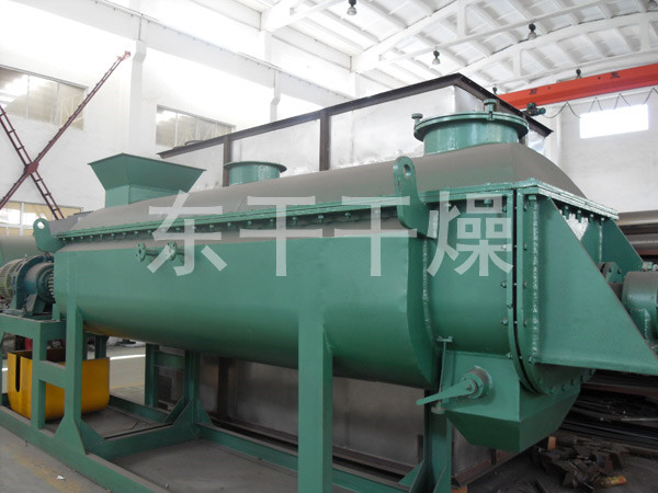 浆叶干燥机已成功地用于食品、化工、石化、染料、工业污泥等领域。设备传热、冷却、搅拌的特性使之可以完成以下单元操作:燃烧(低温)、冷却、干燥(溶剂回收)加热(融化)、反应和灭菌。搅拌浆叶同时又是传热面,使单位有效容积内传热面积增大,缩短了处理时间。楔型浆叶传热面又具有自清洁功能。压缩--膨胀搅拌功能使物料混和均匀。物料沿轴向成"活塞流"运动,在轴向区间内,物料的温度、湿度、混合度梯度很小。用导热油做热介质浆叶干燥机可完成低温燃烧工作。如:二水硫酸钙(Ca2SO4·2H2O) 燃烧转化为半水硫酸钙(Ca2SO4·1/22H2O)。碳酸氢钠(NaHCO3)经煅烧转化为纯碱(Na2HCO3)等。通入冷却介质,如水、冷却盐水等即可用来冷却。如:使用于纯碱行业的浆叶式凉碱机,取代老式的空气冷却凉碱机,节省了能源及尾气处理设备,降低了操作费用。干燥,设备最主要的功能,不使用热空气,使溶剂回收、能源消耗、环境控制处于易处理的理想状态。对需回收溶剂、易燃易氧化热敏性物料尤为适应。已广泛用于精细化工、石化、染料行业。轴向区间内,温度、湿度、混合度的均匀性,使得设备可用来加热或融化,或进行一些固体物料反应。在复合肥及变性淀粉行业均已成功使用。浆叶干燥机可用来对食物和面粉进行灭菌处理。单位有效容积内大的加热面积,很快就将物料加热到灭菌温度,避免了长时间加热而改变物料品质。