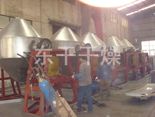 ◎在动力驱动下,罐体作缓慢旋转,罐内物料不断地混合,从而达到强化干燥的目的。