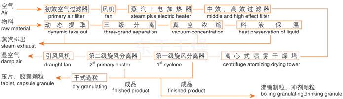 中药浸膏高速离心喷雾装置是离心式喷雾干燥技术在特定物料干燥中的应用,也是利用高速离心式雾化器使物料分散成雾状,与热空气充分接触,完成瞬间干燥,形成粉状成品的干燥装置。
