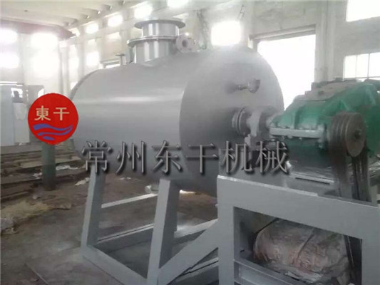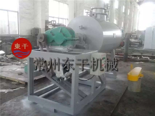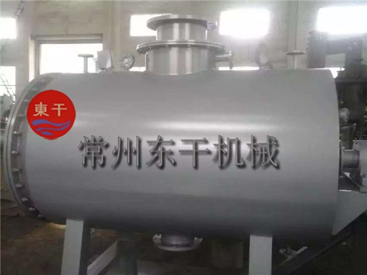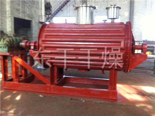本机是一种新颖卧式间歇式真空干燥设备,湿物料经传导蒸发,带有刮板搅拌器不断清除热面上的物料,并在容器内推移形成循环流,水份蒸发后由真空泵抽出。