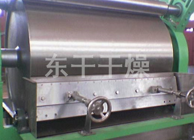 滚筒干燥机是一种内加热传导型转动连续干燥设备。旋转的滚筒通过其下部料槽,粘附着一厚度的料膜,热量通过管道输送至滚筒内壁,传导到滚筒外壁,再传导给料膜,使料膜中的湿得到蒸发、脱湿、使含湿分的物料得到干燥。干燥好的物料被装置在滚筒表面的刮刀铲离滚筒,到置于刮刀下方的螺旋输送器,通过螺旋输送器将干物料集中、包装。