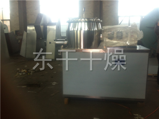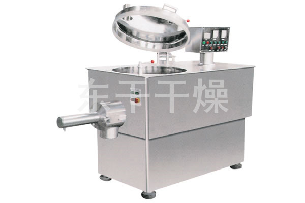 粉体物料与粘合剂在圆筒形容器中由底部混合浆充分混合成湿润软材,然后由侧置的高速粉碎桨切割成均匀的湿颗粒。