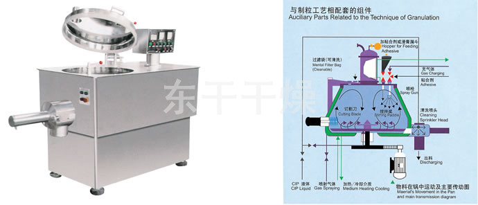 ◎在同一封闭容器内完成,干混-湿混-制粒,工艺缩短。