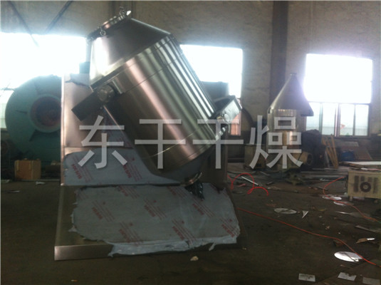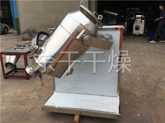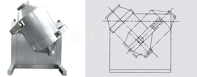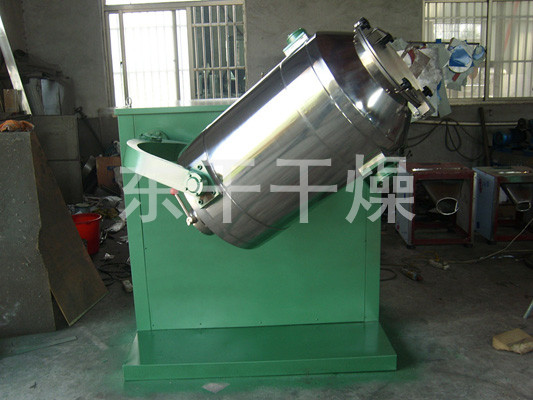 装料的筒体在主动轴的带动下,作周而复始的平移、转动和翻滚等复合运动,促使物料沿着筒体作三向复台运动,从而实现多种物料的互相流动、扩散、积聚、掺杂.以达到均匀混合的目的。