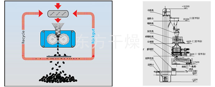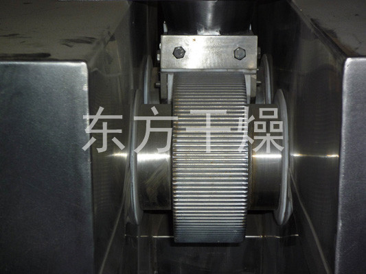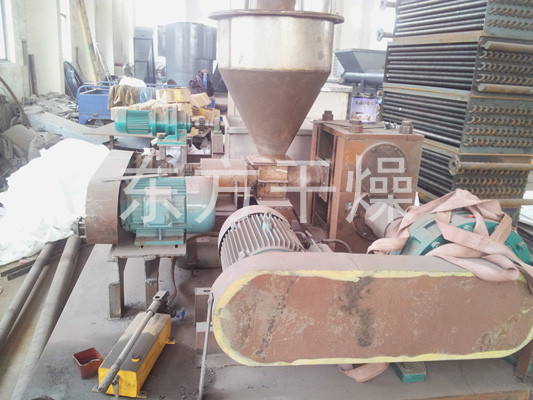 Process principle of roller extrusion granulation are: dry material under pressure into a dense agglomeration of hard chunks (cake material), known as the extrusion process; cake feed pellets again become known as made after crushing and screening granulation process. First, the effect of squeezing the air between the particles squeezed out, the other is to make the distance between particles nearly enough to produce such as van der Waals force, adhesive force, and an embedded crystal bridge connections attraction. Extrusion granulation particles mainly by intermolecular force between the particle strength of the formation.